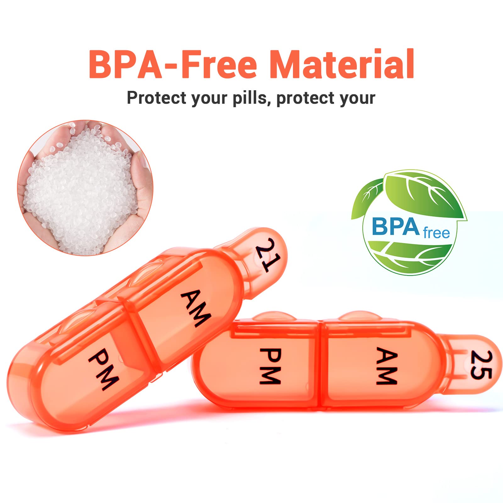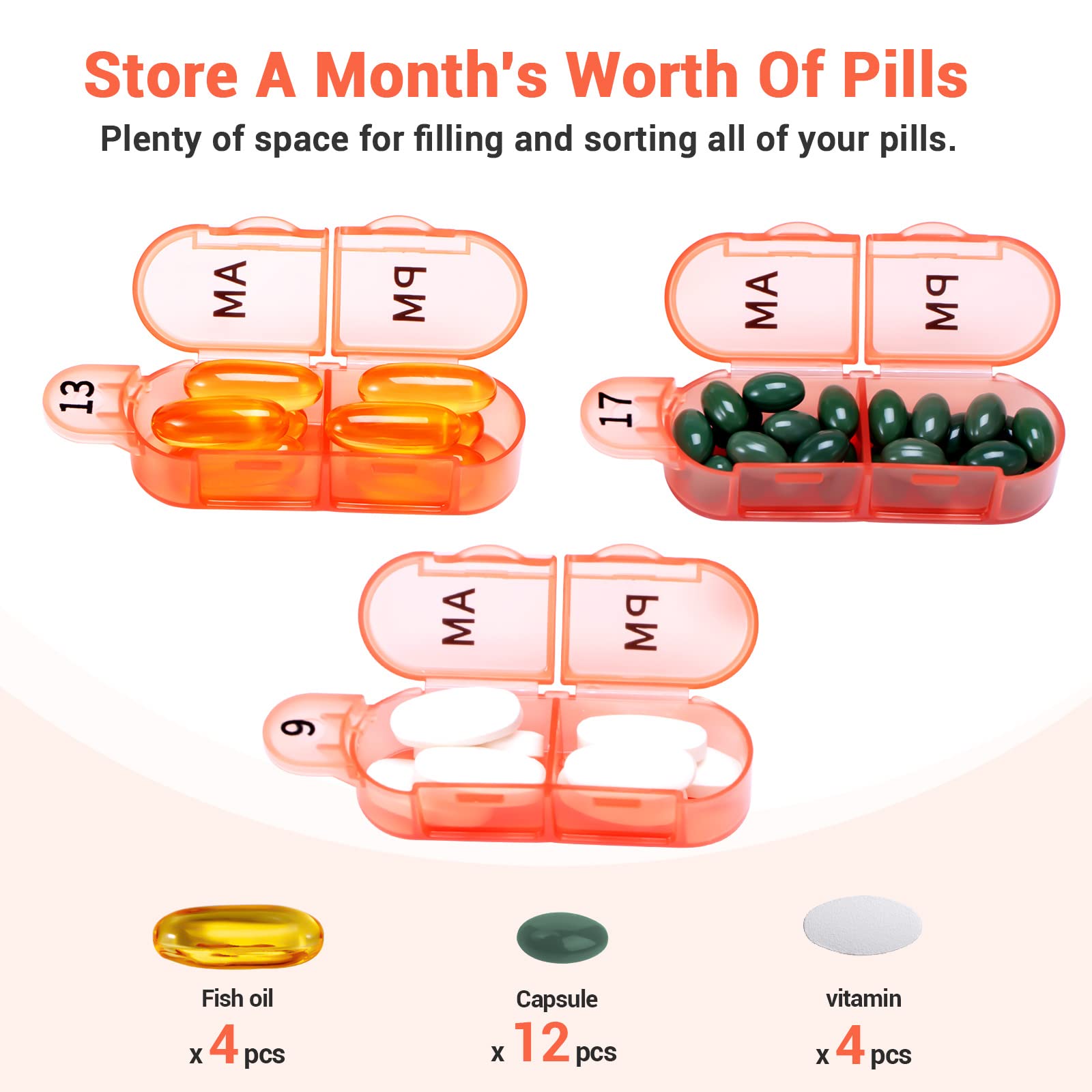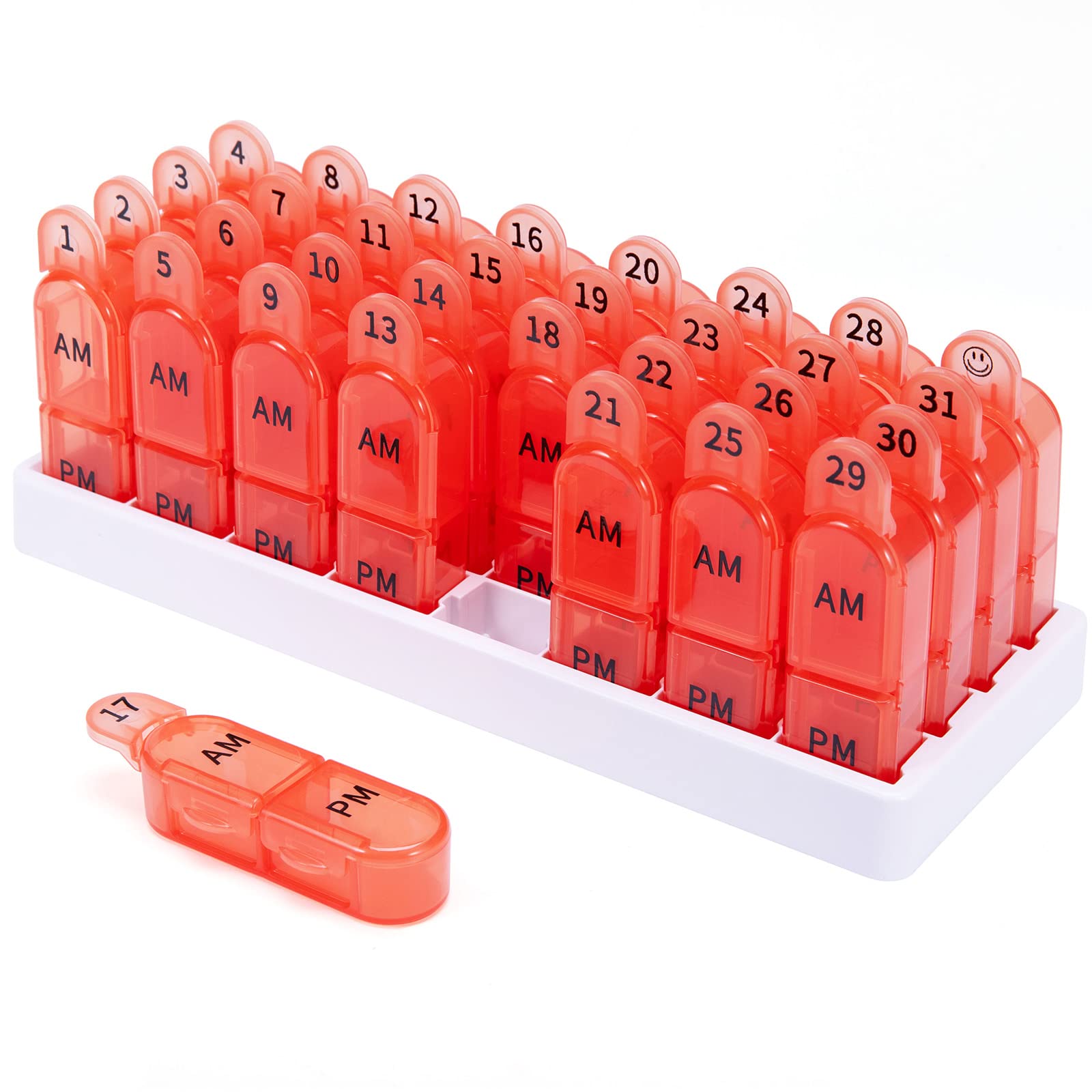 Monthly Pill Organizer, 30 Day Pill Organizer 2 Times A Day, One Month Pill Box Organizer AM PM, 31 Day Pill Organizer with 32 Daily Compartments for Fish Oil, Vitamins, Orange